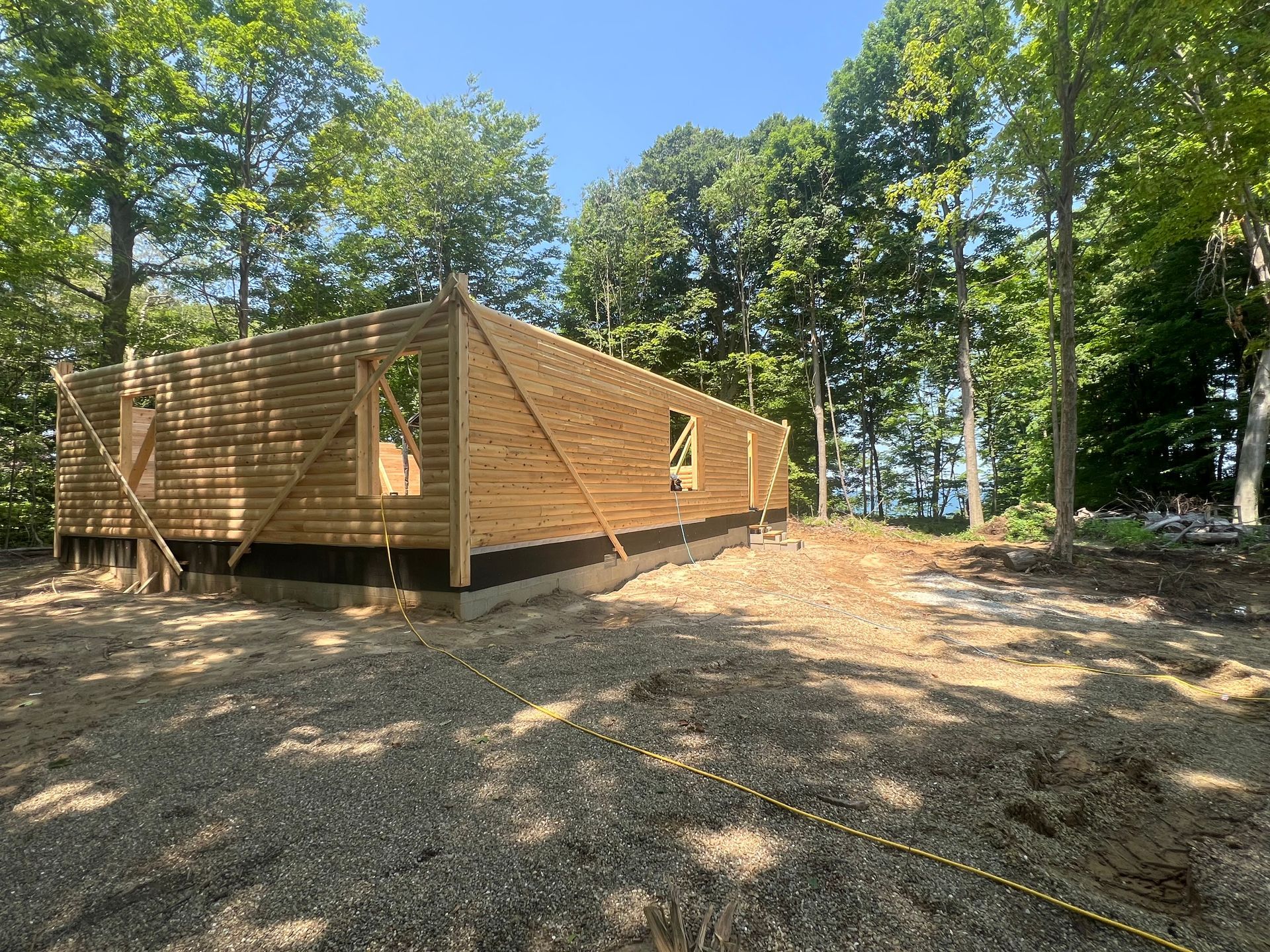 Enjoy views of Lake Erie from a brand new, luxury, Northern White Cedar Log Home. This property is one of a kind! A peaceful creek flows through the ravine providing the serene sound of flowing water. Nestled on a 2.26 acre wooded property, while being only 10 minutes away from downtown Harborcreek. Nearby wineries and beaches provide endless entertainment! This New Construction Home is expected to be completed in November 2025. 3 bed/2.5 bath. This cabin features a private suite in the upstairs loft area, modern rustic touches, unique outdoor living space, tiled showers, large windows to view Lake Erie sunsets, and so much more! The price for the home is to spec with pre-chosen finishes. (All finish specifications can be provided.) However, if a buyer would like to make custom changes, this can be done through a change order system.